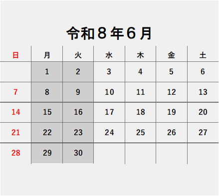 ・1日(月)・2日(火)・8日(月)・9日(火)・15日(月)・16日(火)